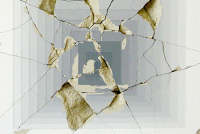Spall 2 2012 Cracked cement and paint in a maple wood frame 14 x 14 x 1 inch